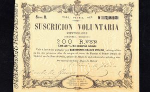 Bono Real del Tesoro 1850, 5000 pesos fuertes, MBC
