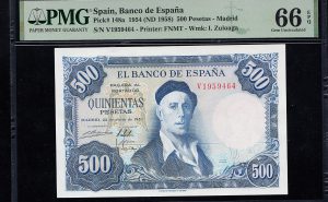 500 Pesetas 1954 serie V ,( Última serie emitida ). PMG 66EPQ.