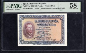 25 pesetas 1926, serie B. PMG 58 (Posibilidad de pareja correlativa).