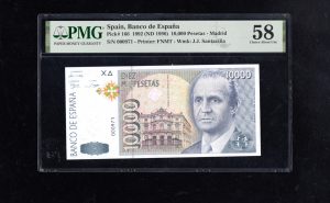 10000 pesetas 1992, Sin Serie, número bajo. PMG 58 .