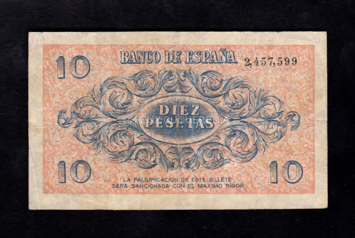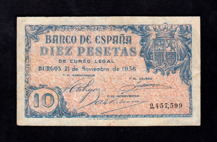 10 pesetas 1936, MBC-, restauración en esquina superior derecha