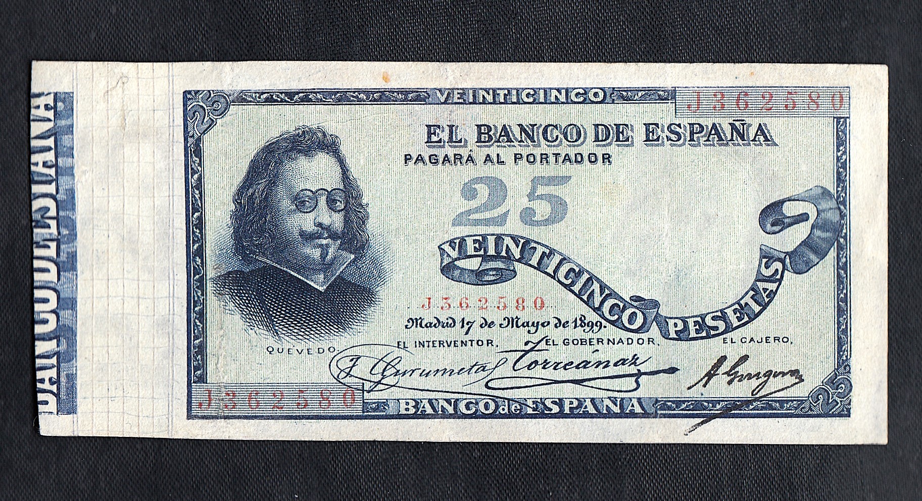 25 pesetas 1899 serie J. MBC , Reparaciones.