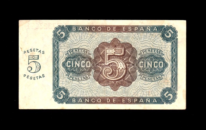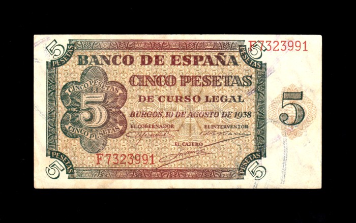 5 pesetas 1938, serie F, EBC-, pico doblado