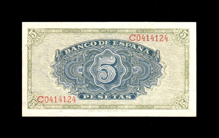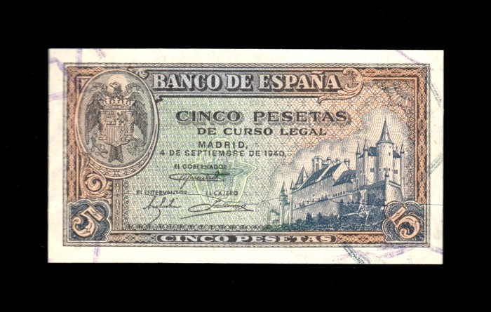 5 pesetas 1940, serie C, EBC, pliegue de papel horizontal