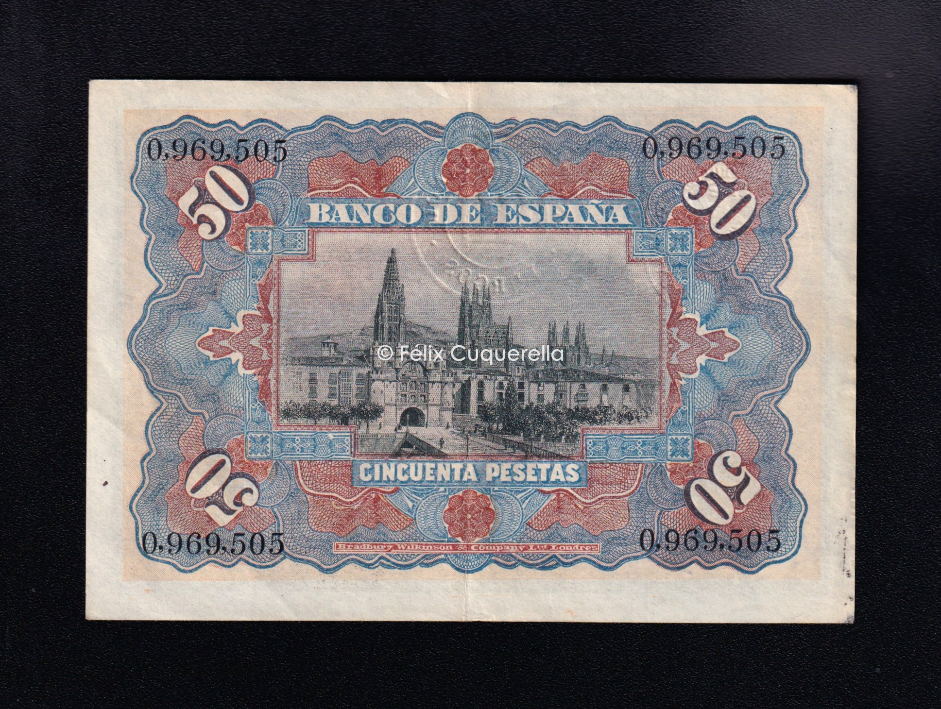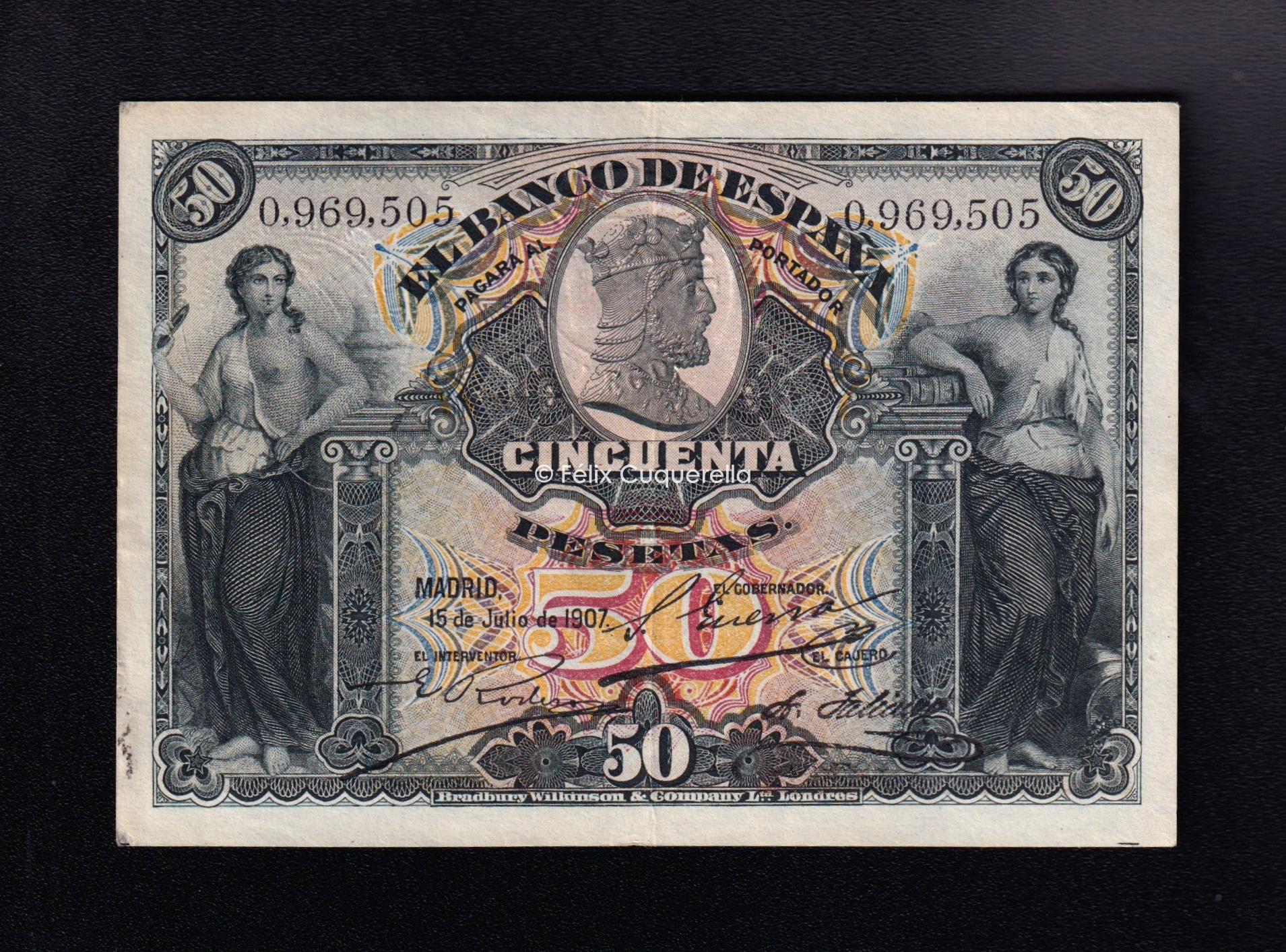 50 Pesetas 1907, EBC-, sello seco de república y estado español