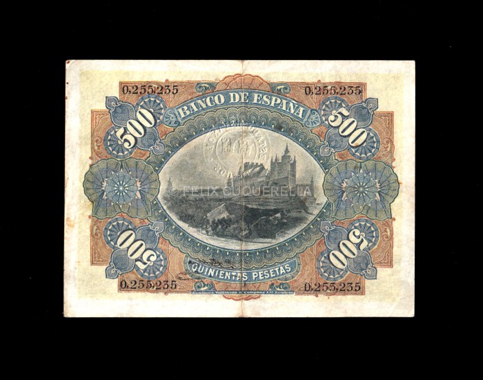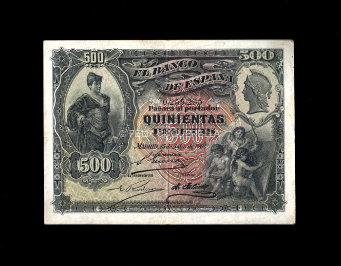 500 Pesetas Julio 1907, Resello de Burgos, MBC-, manchitas