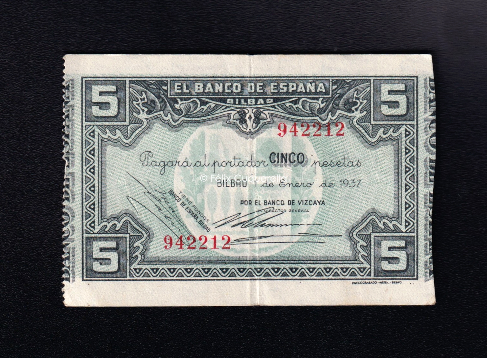 Banco de Bilbao 1937, 5 pesetas, sin serie, EBC-, banco de Vizcaya
