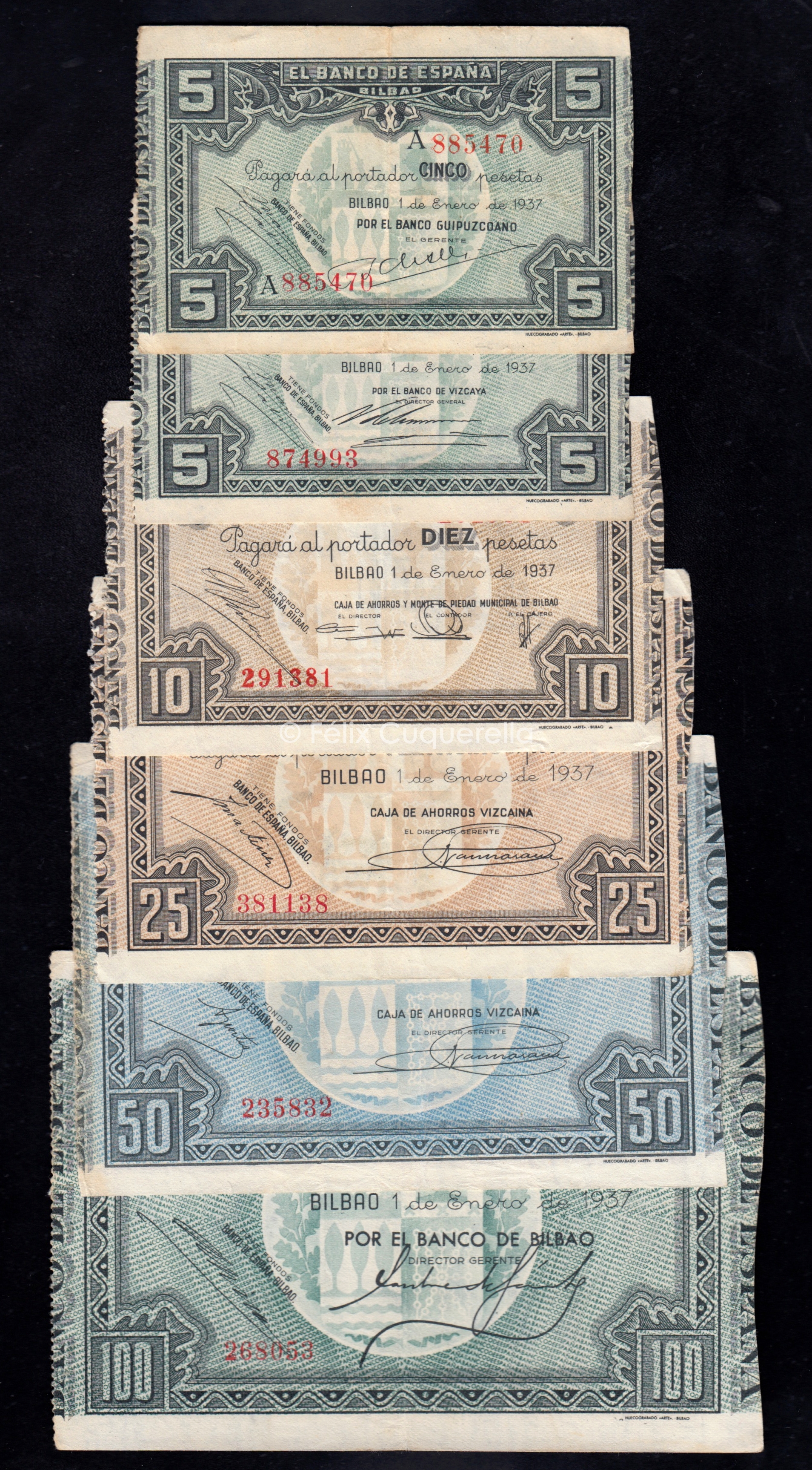 Banco de Bilbao 1937, serie completa, de EBC a MBC-