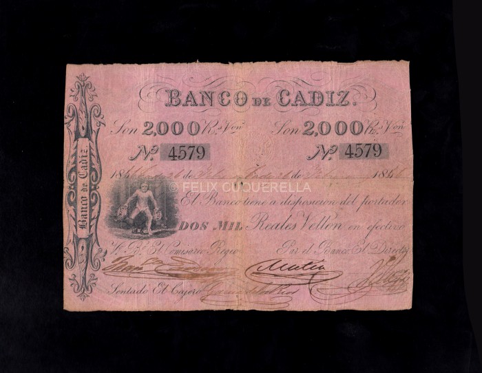Banco de Cádiz, 2000 Reales 1ª emisión, MBC-