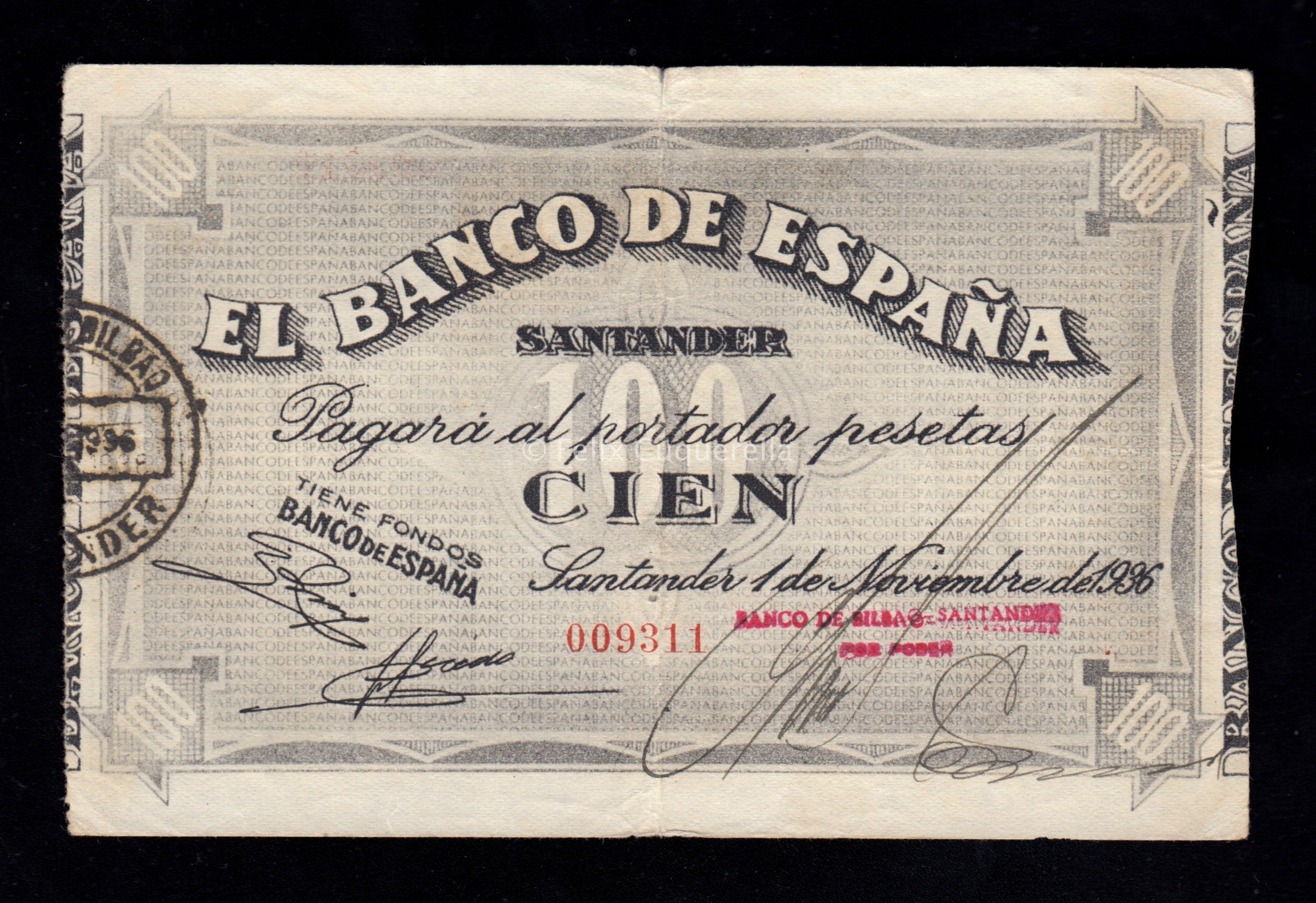 Banco de Santander 1936, 100 pesetas, EBC-