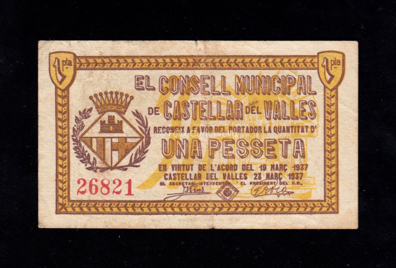 Castella del Vallés (Barcelona), 1 peseta 1937, MBC-