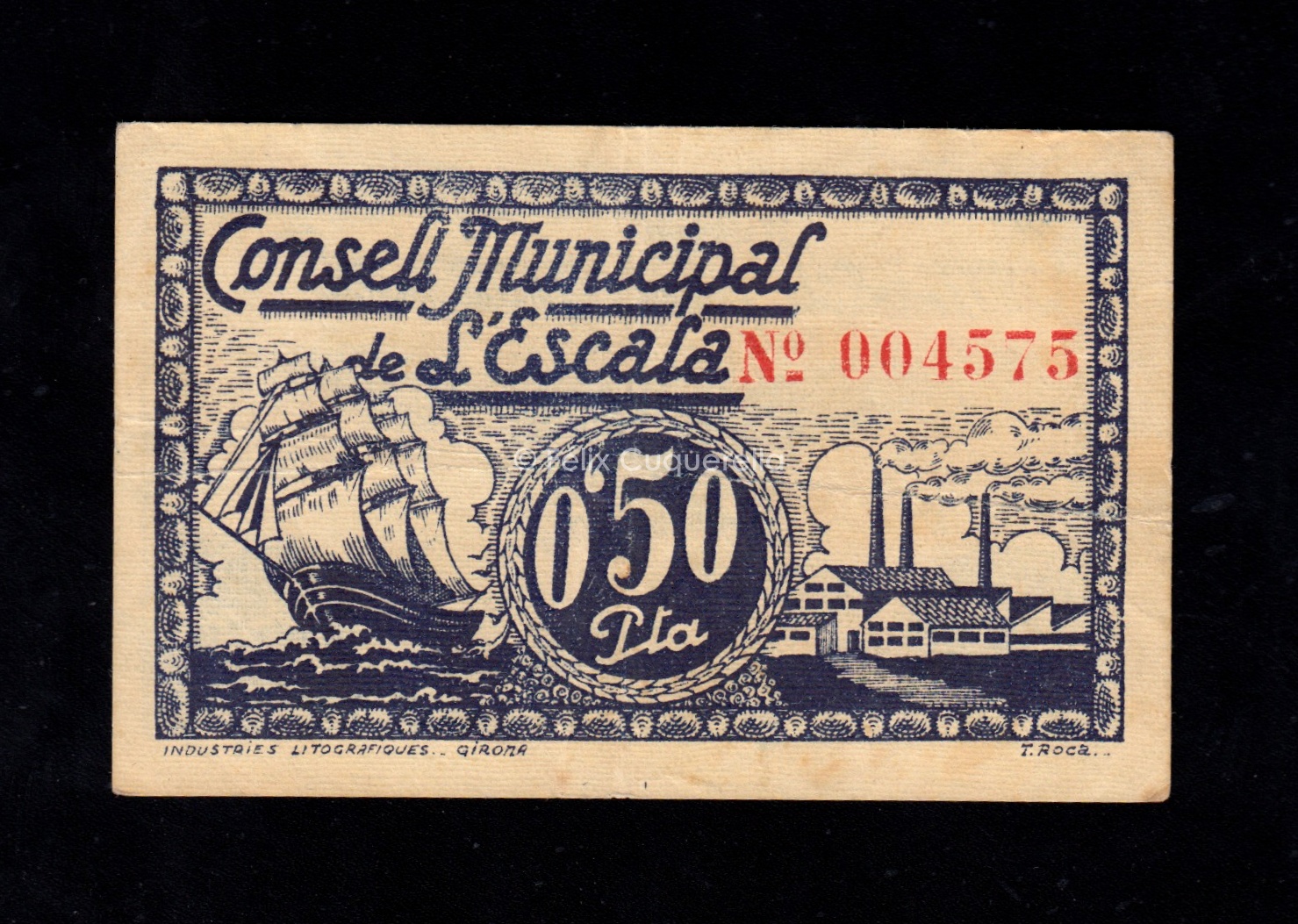 Escala (Gerona), 50 céntimos 1937, MBC