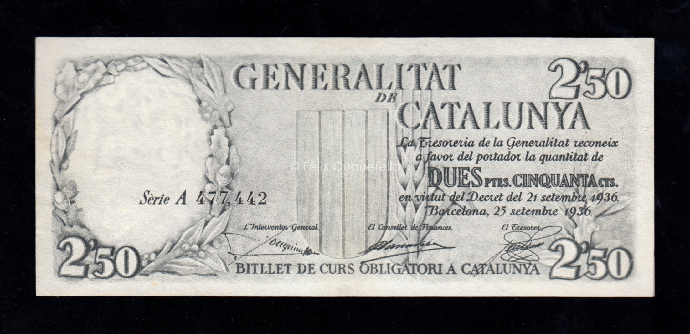 Generalidad, 2,50 pesetas, serie A, EBC+, números negros
