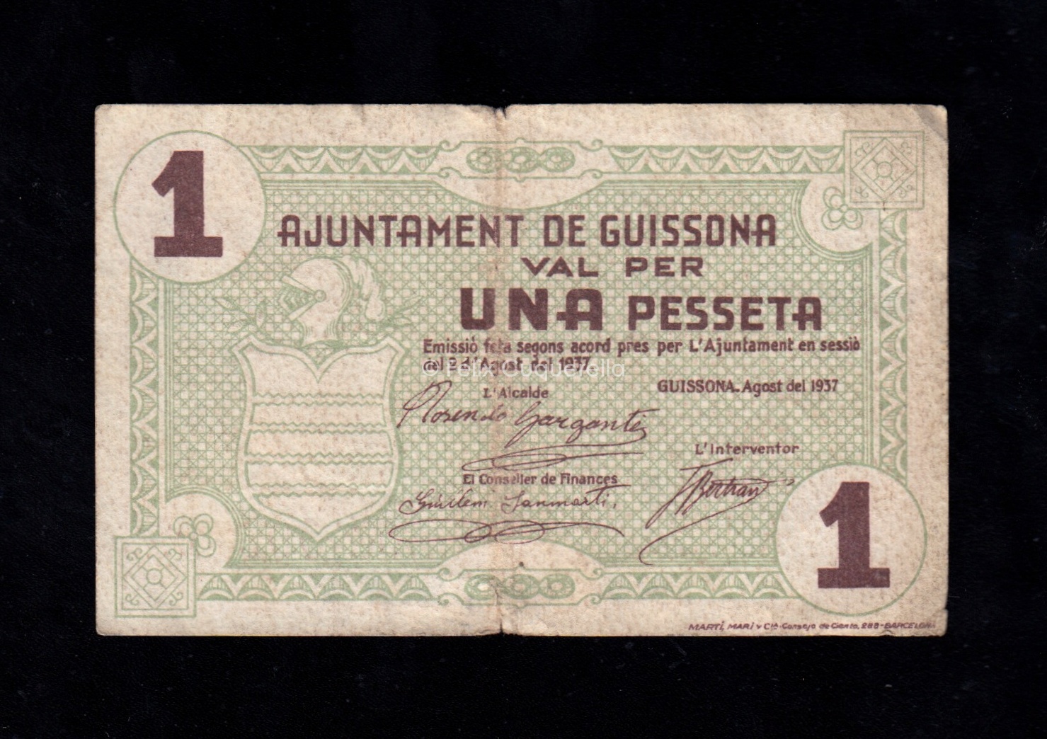 Guissona (Lérida), 1 peseta 1937, B/C+