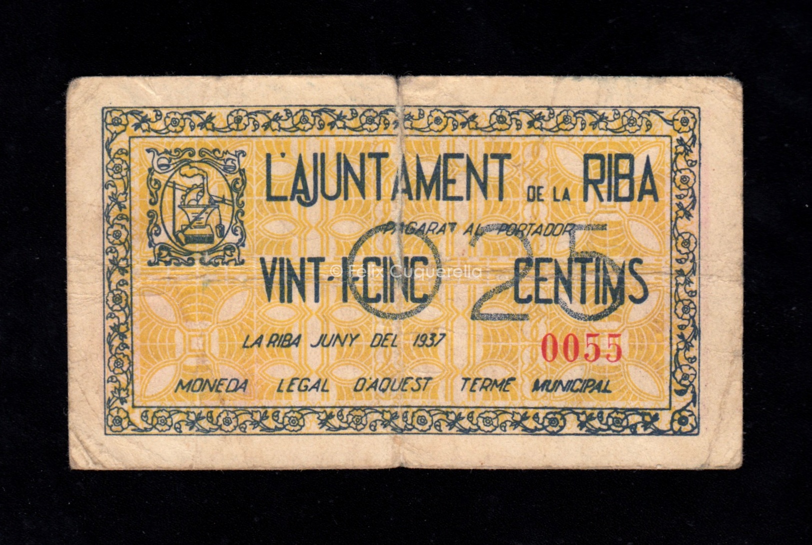 La Riba (Tarragona), 25 céntimos 1937, B/C