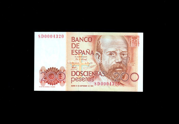 Número bajo 200 Pesetas 1980, serie especial 8D, EBC