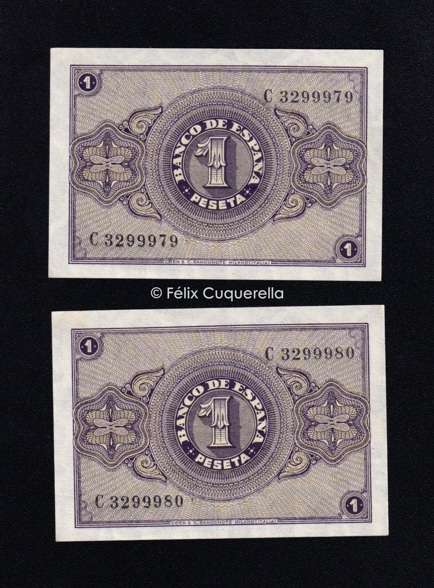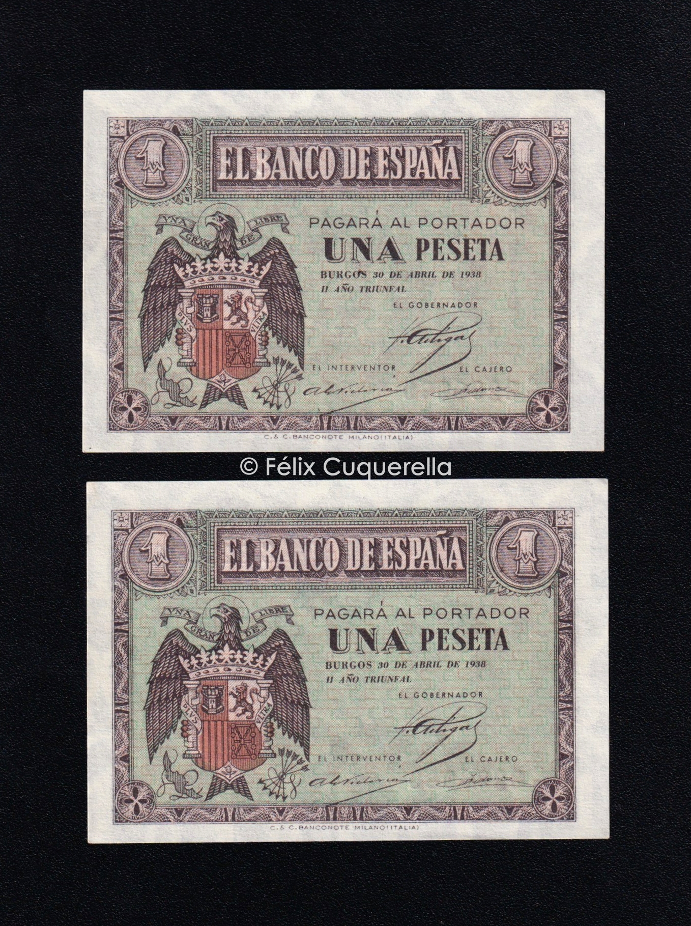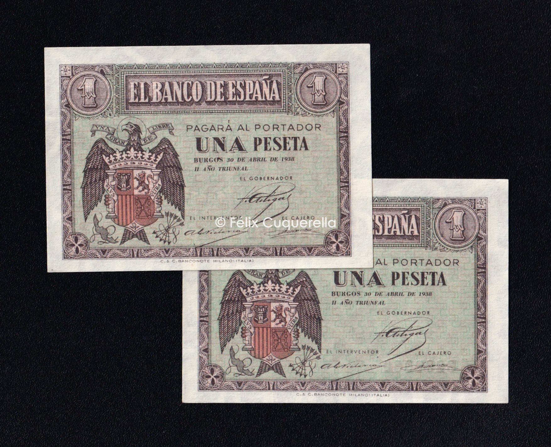 Pareja correlativa 1 Peseta Abril 1938, serie C, S/C-