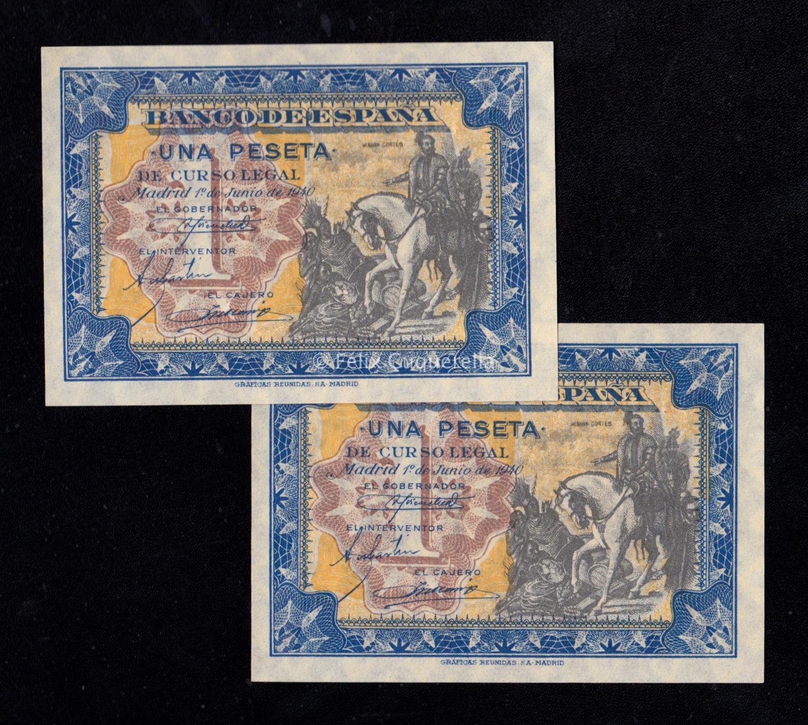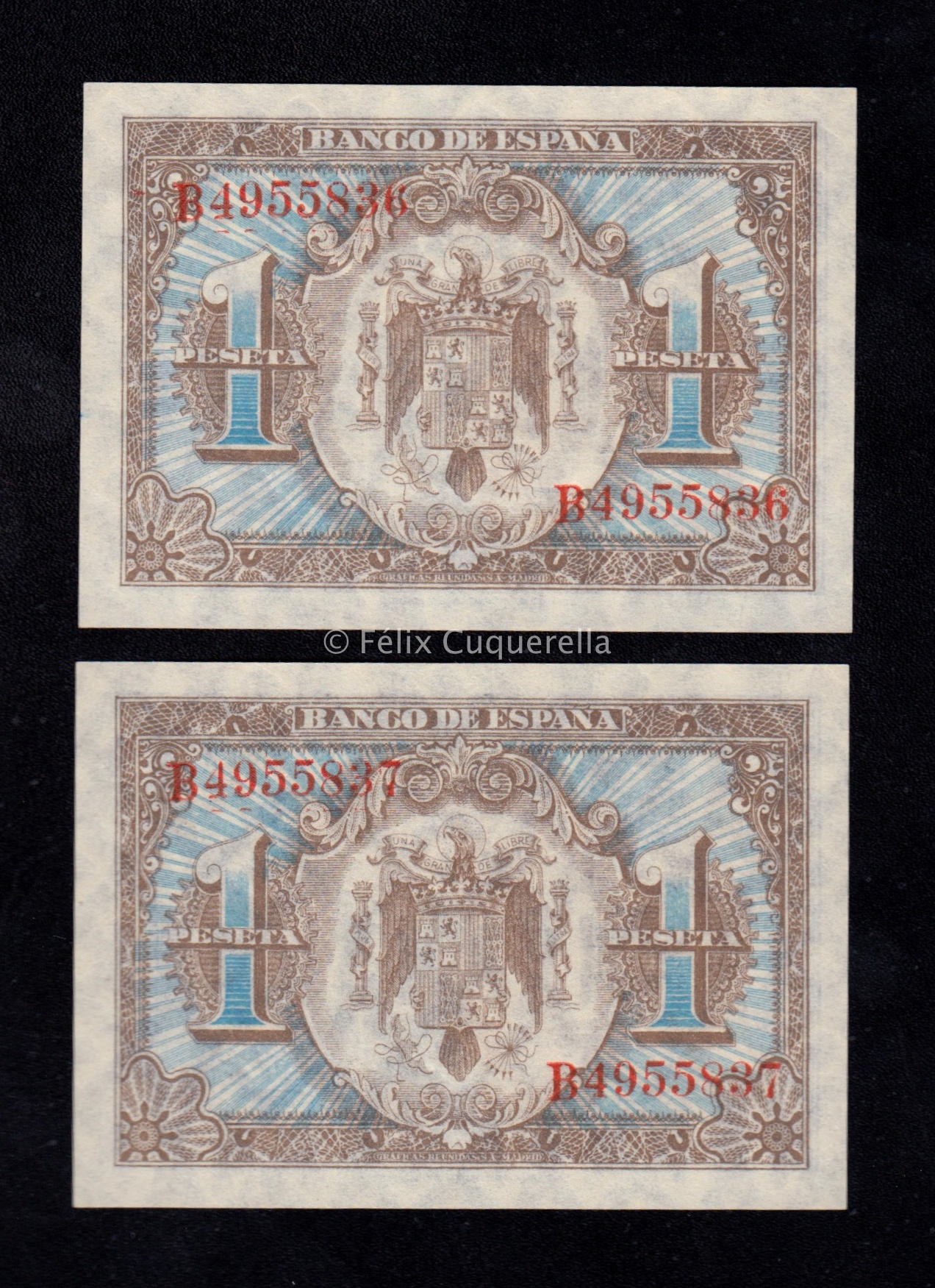 Pareja correlativa 1 Peseta junio 1940, serie B, S/C