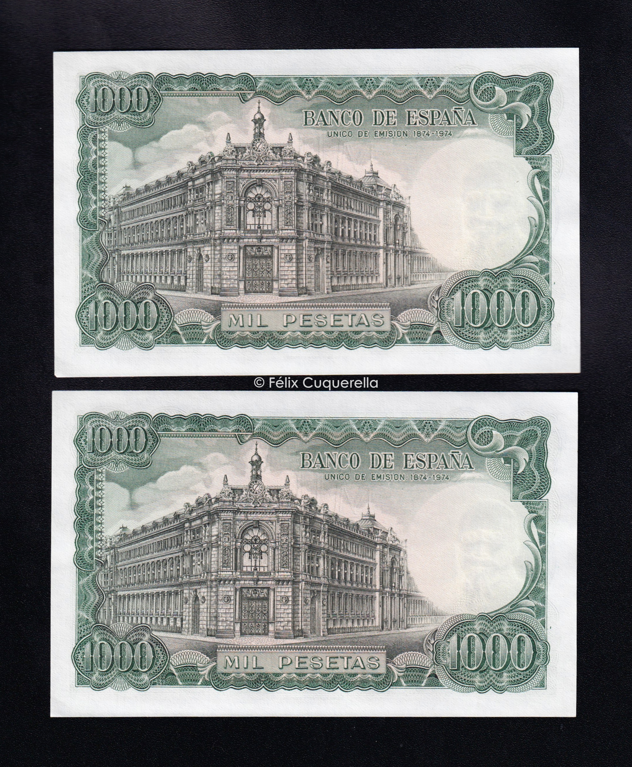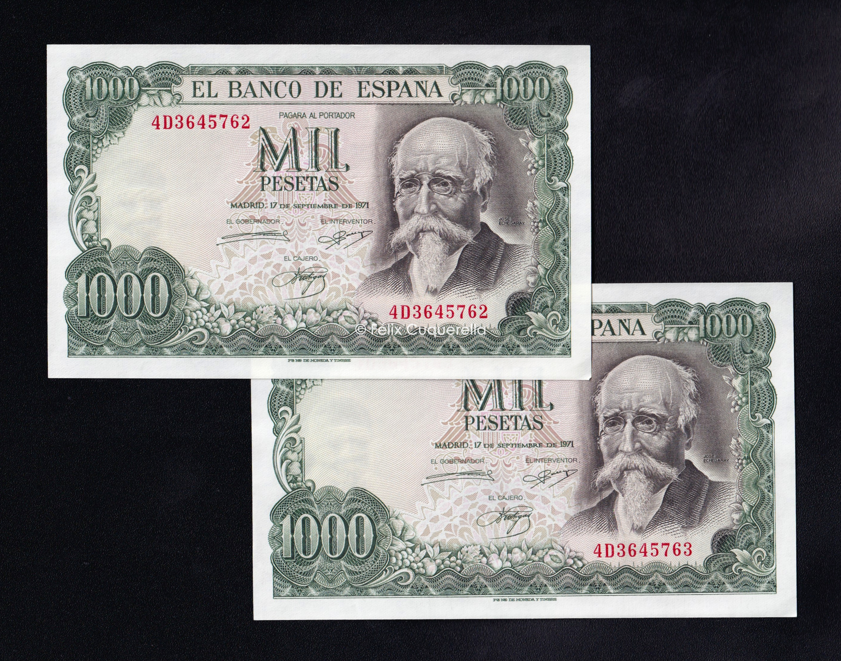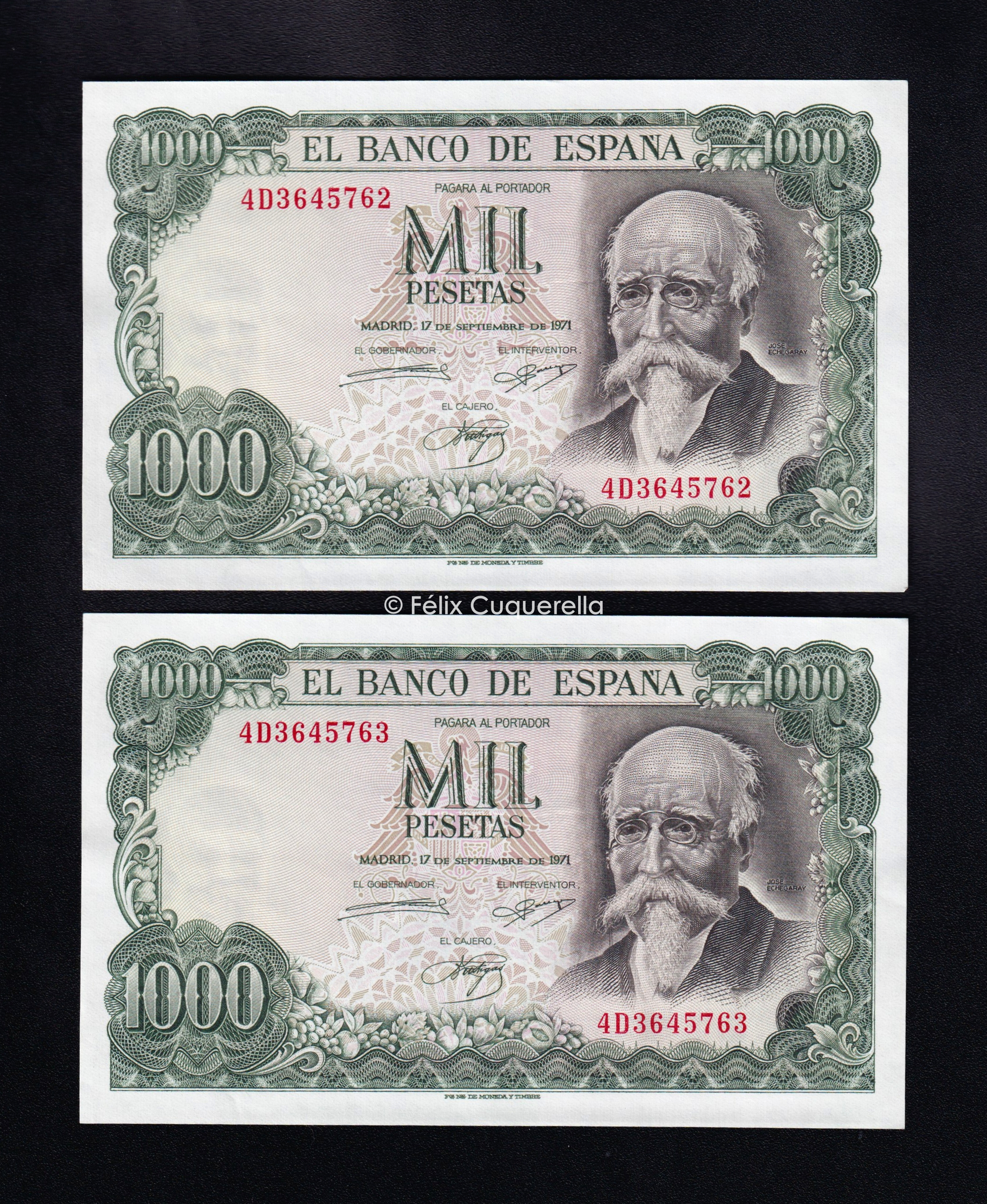 Pareja correlativa 1000 pesetas 1971, serie 4D, S/C-