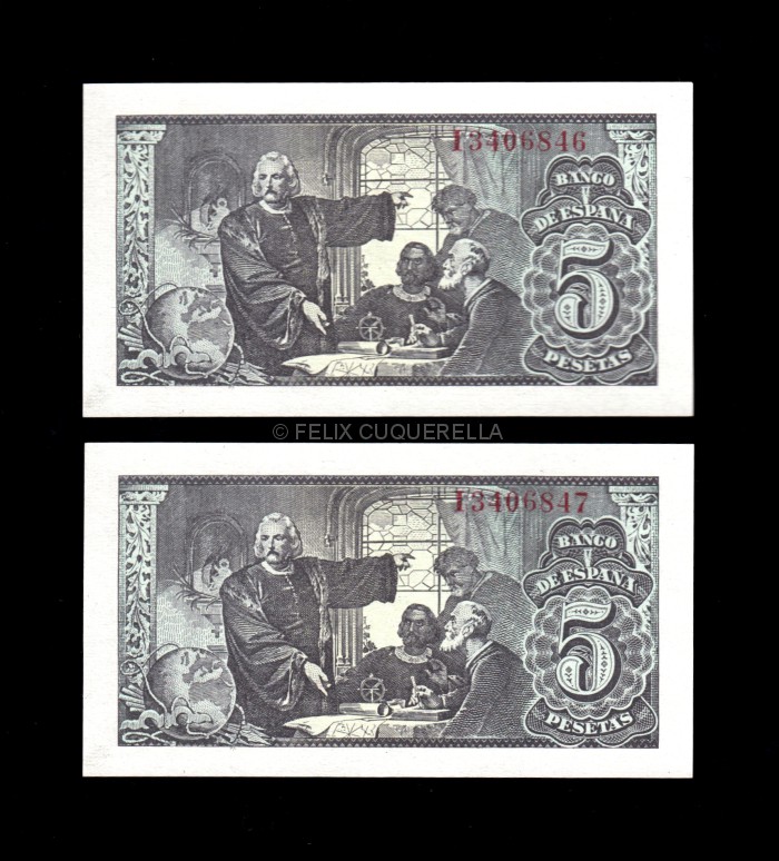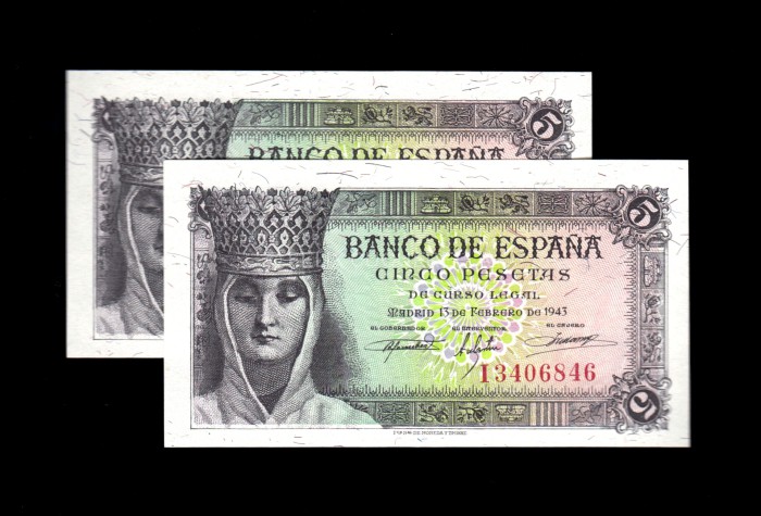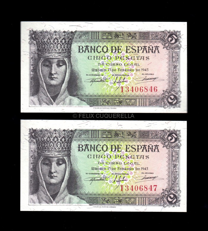 Pareja correlativa 5 pesetas 1943, serie I, S/C