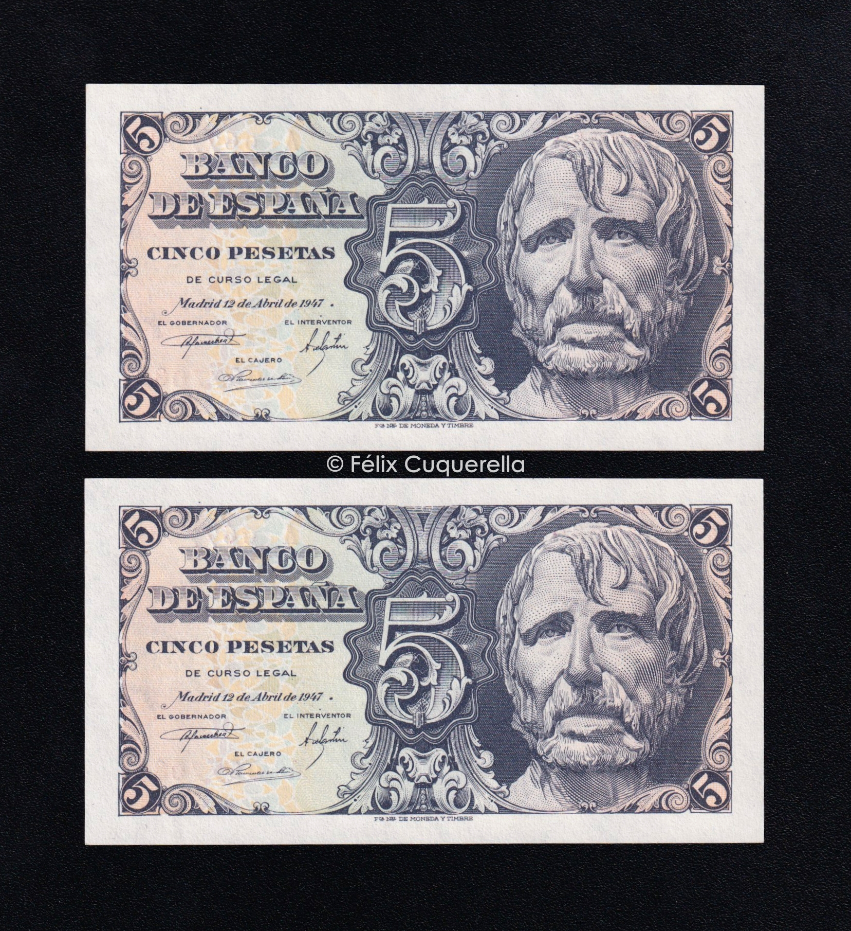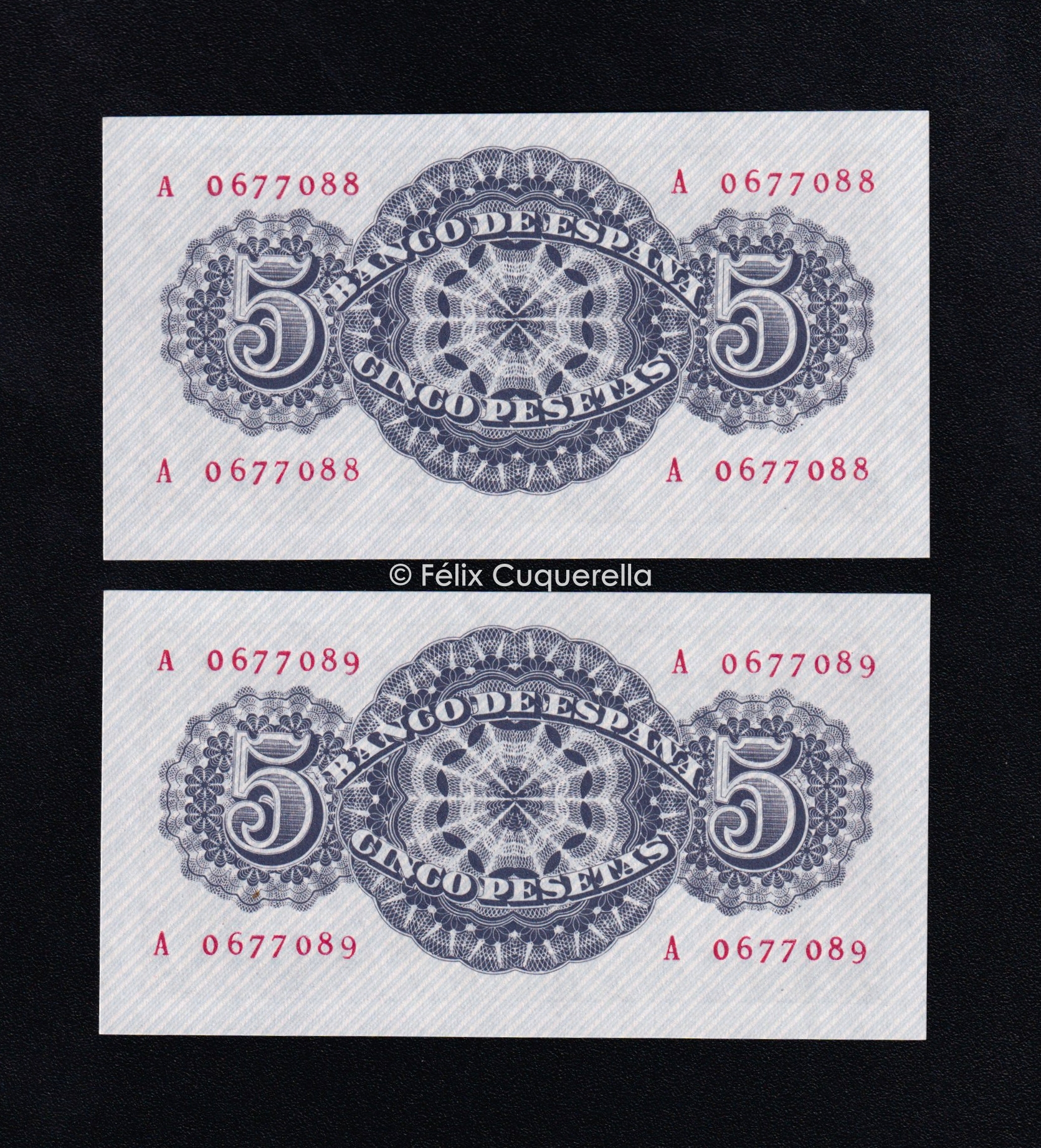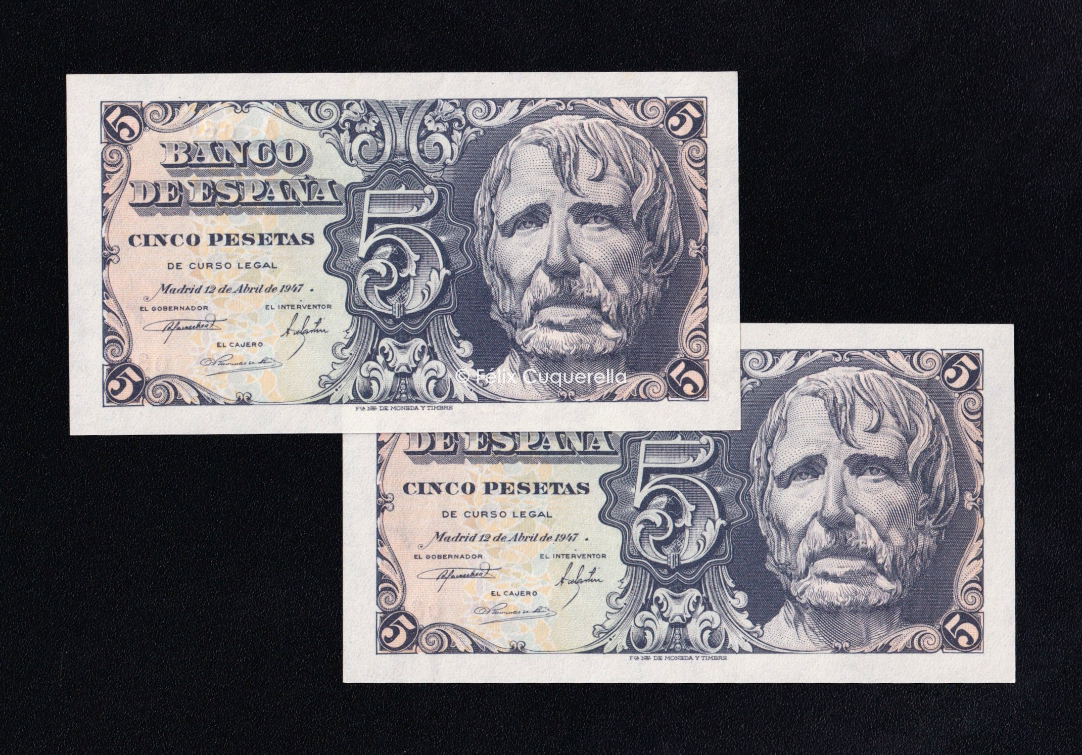 Pareja correlativa 5 pesetas 1947, serie A, S/C
