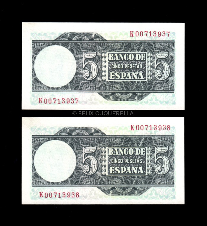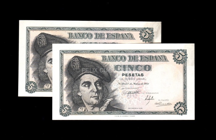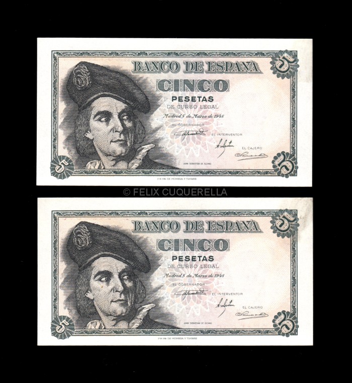 Pareja correlativa 5 pesetas 1948, serie K, S/C