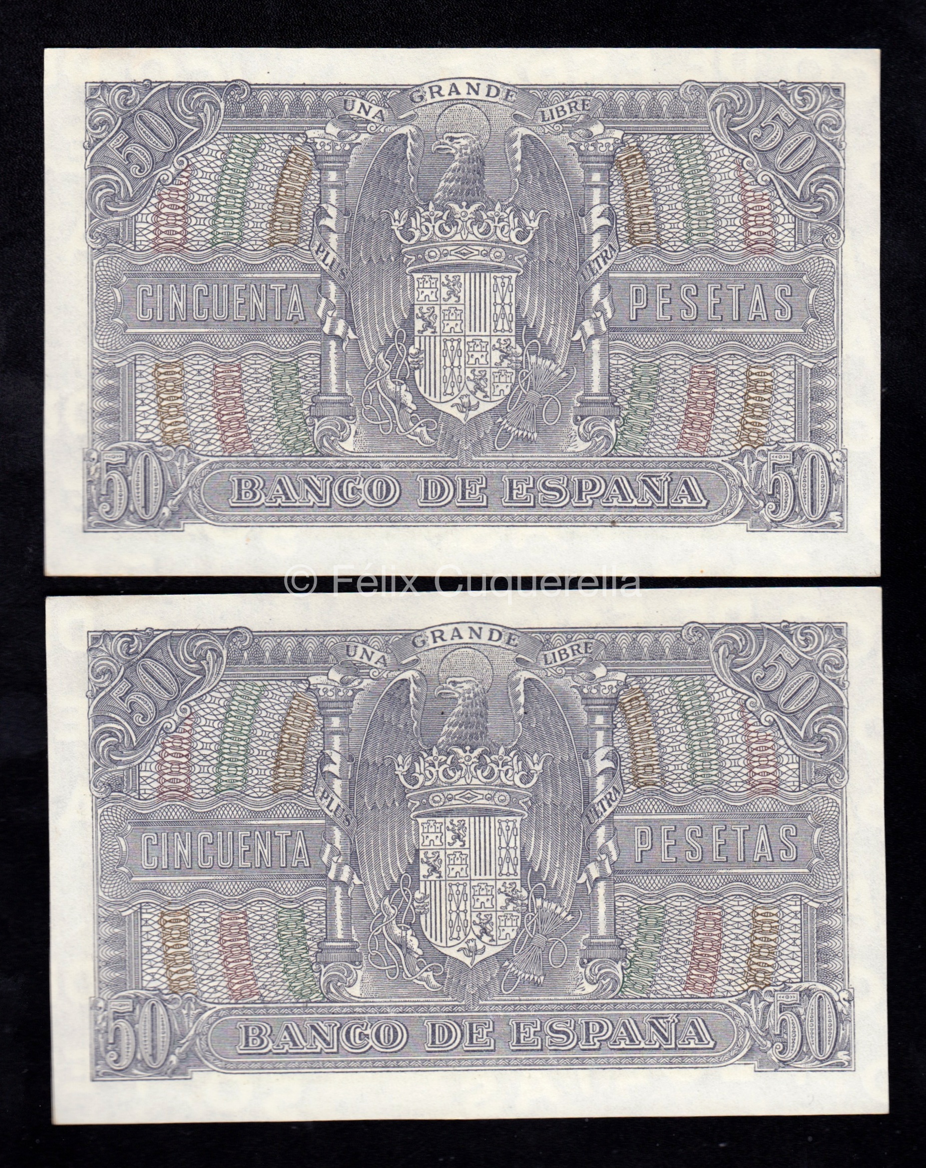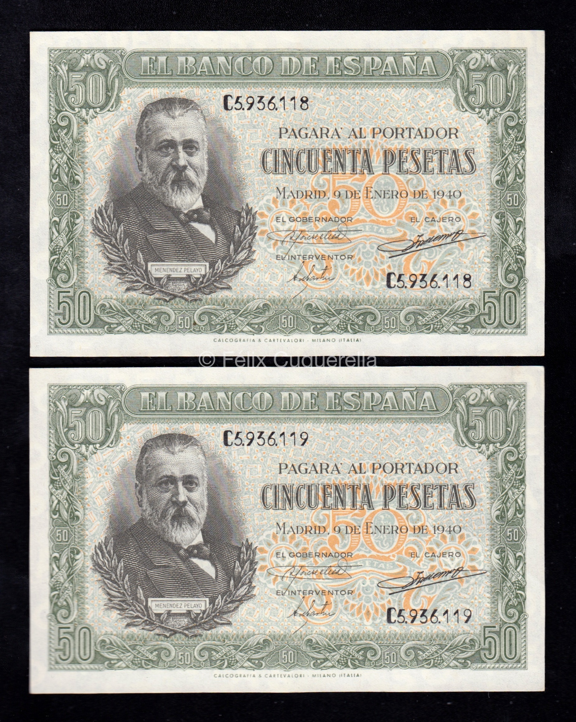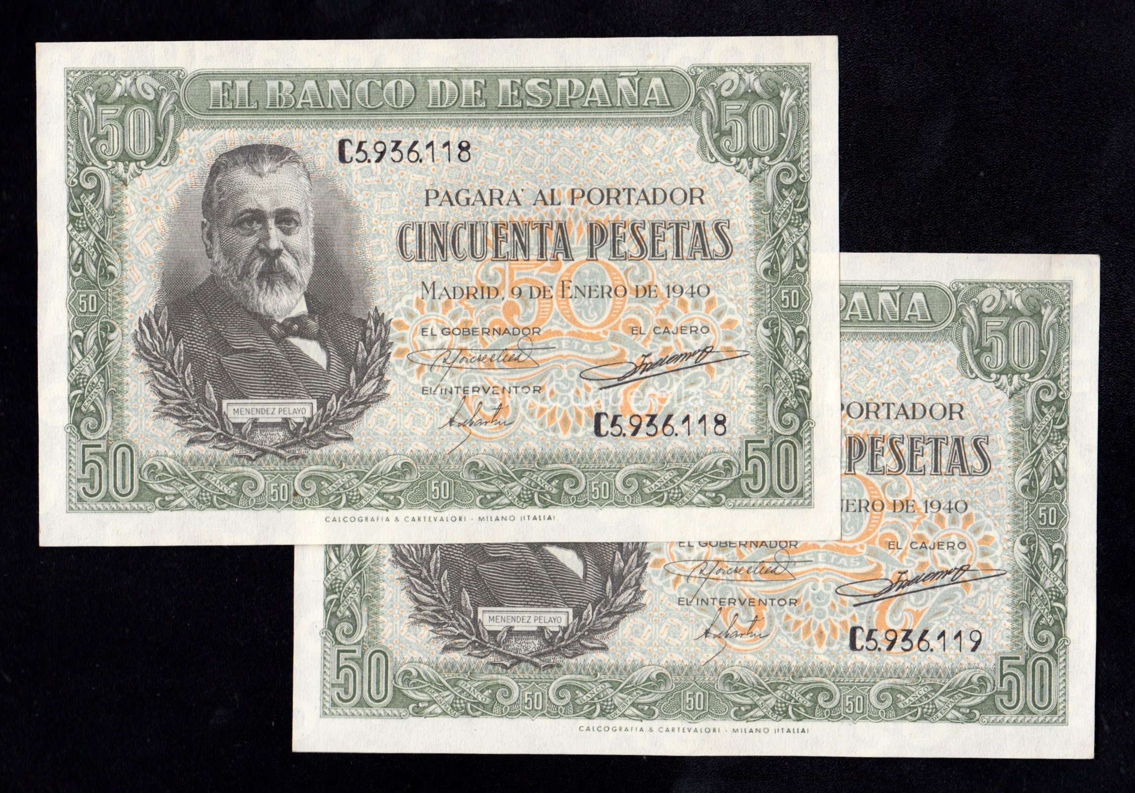 Pareja correlativa 50 Pesetas 1940, serie C, S/C-
