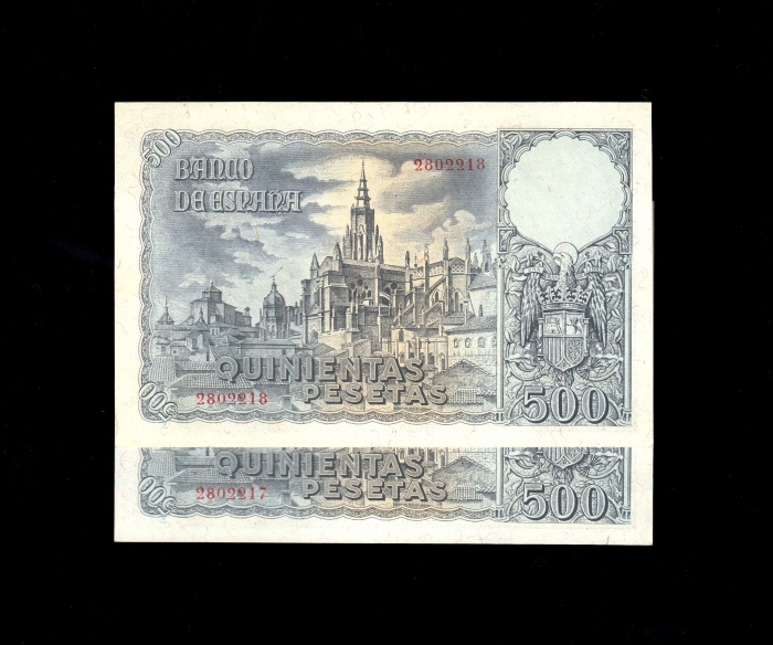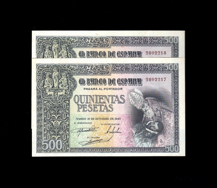 Pareja correlativa 500 Pesetas Octubre 1940, sin serie, EBC+