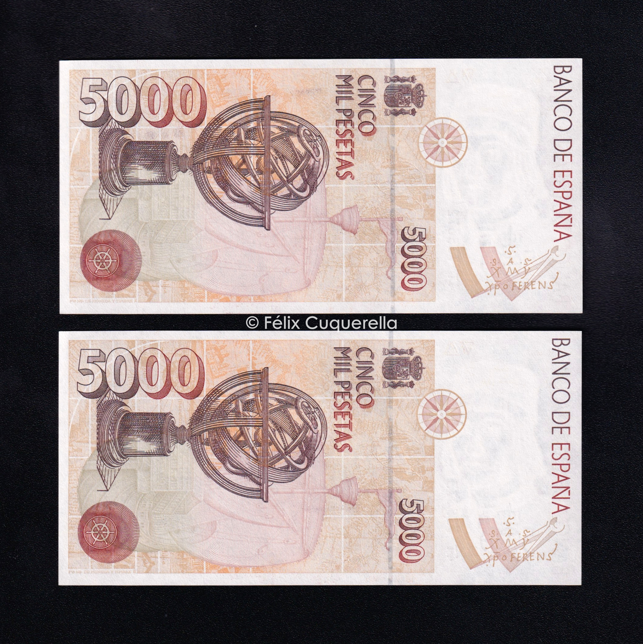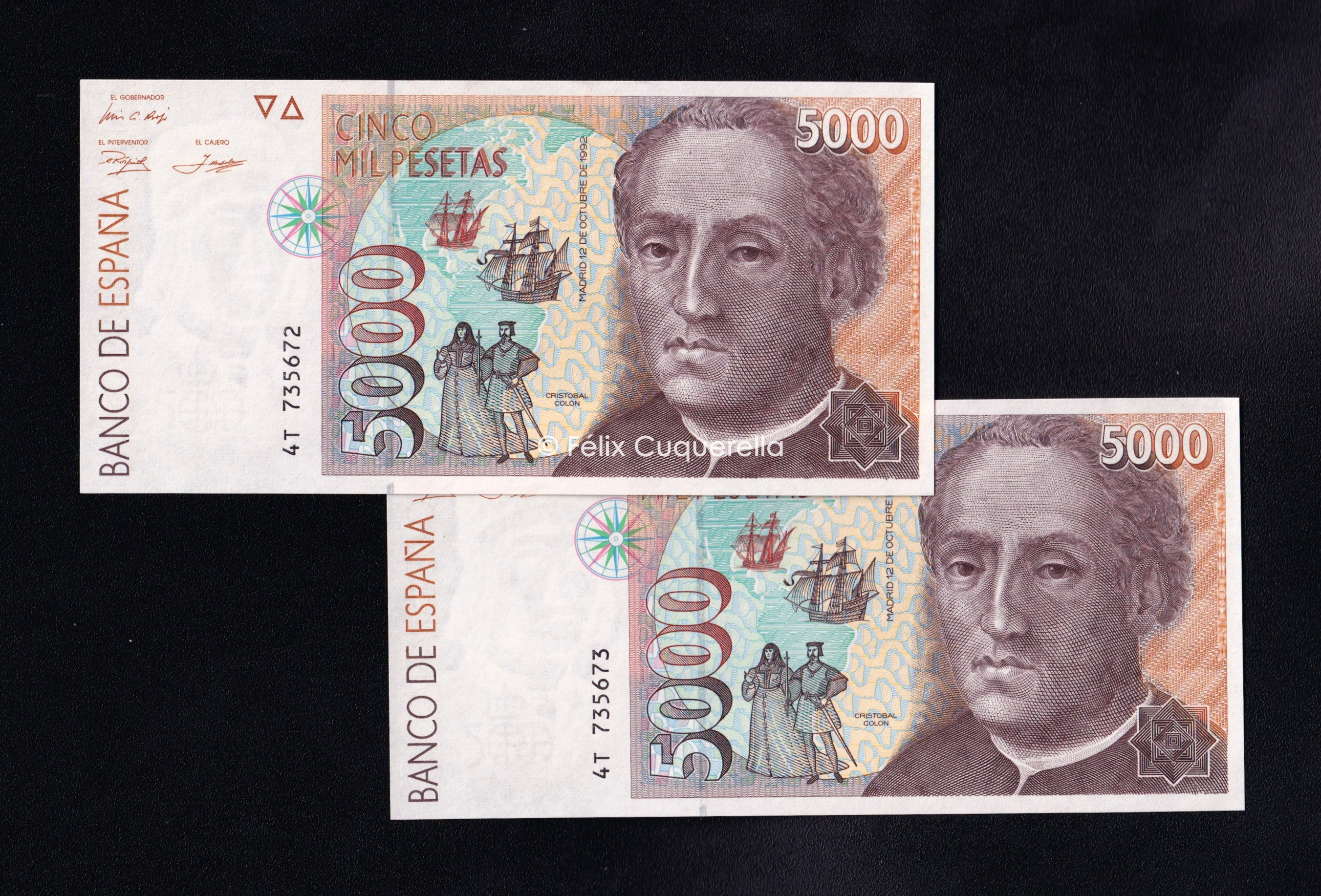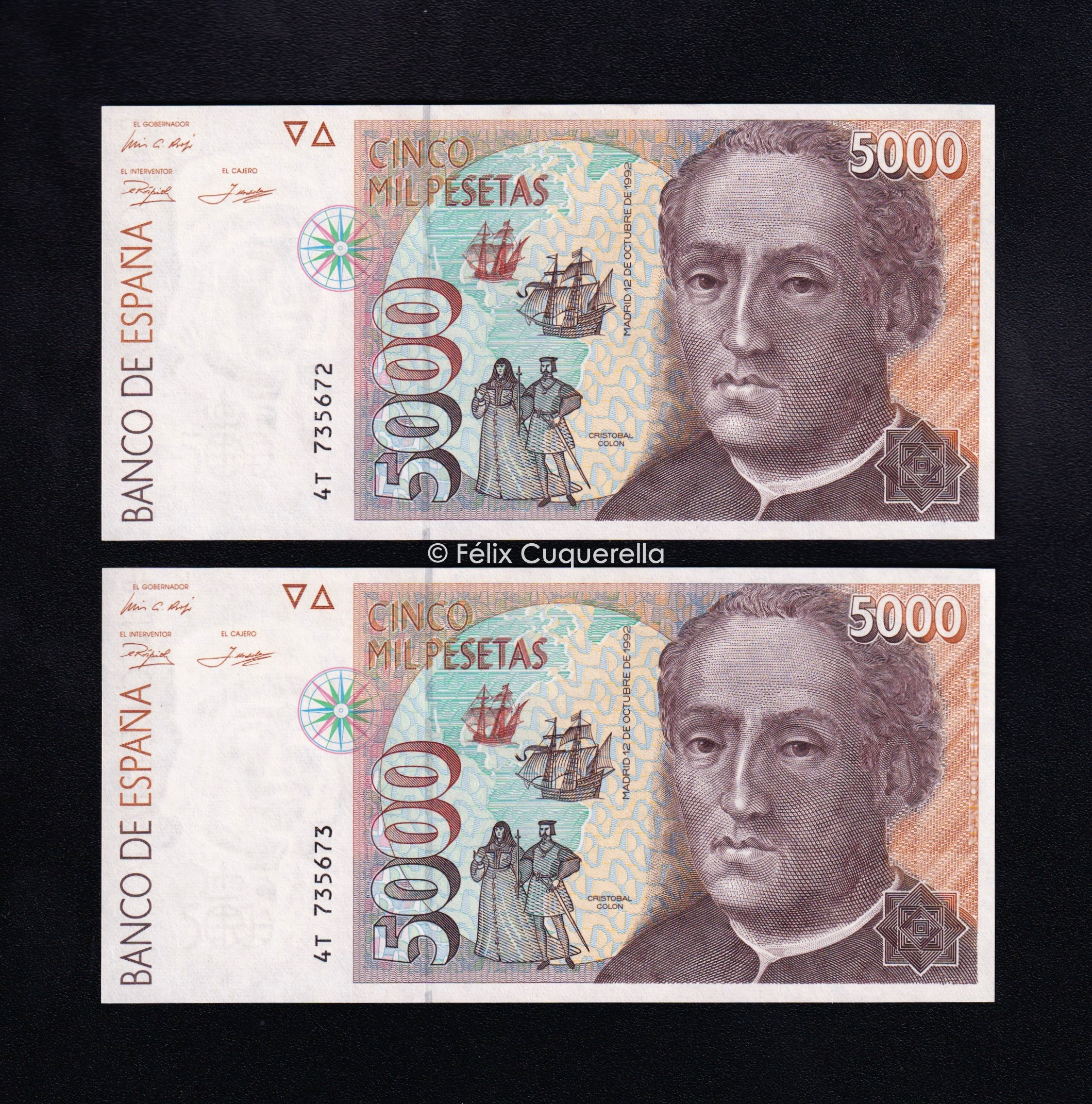 Pareja correlativa 5000 Pesetas 1992, serie 4T, (1) S/C (1) S/C-