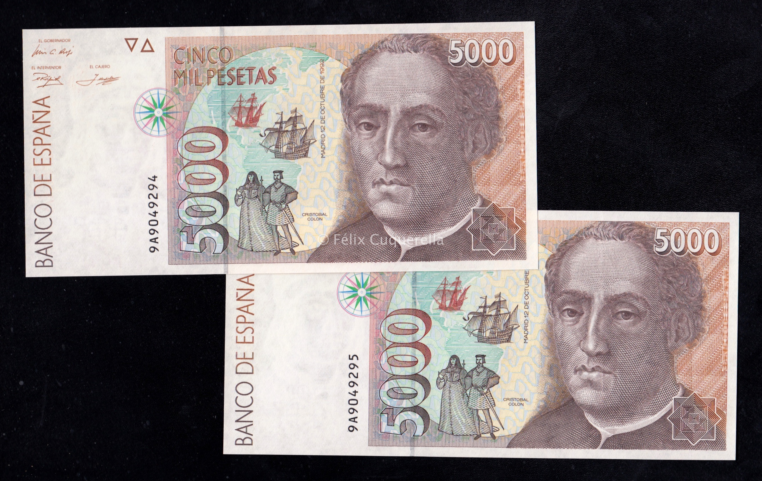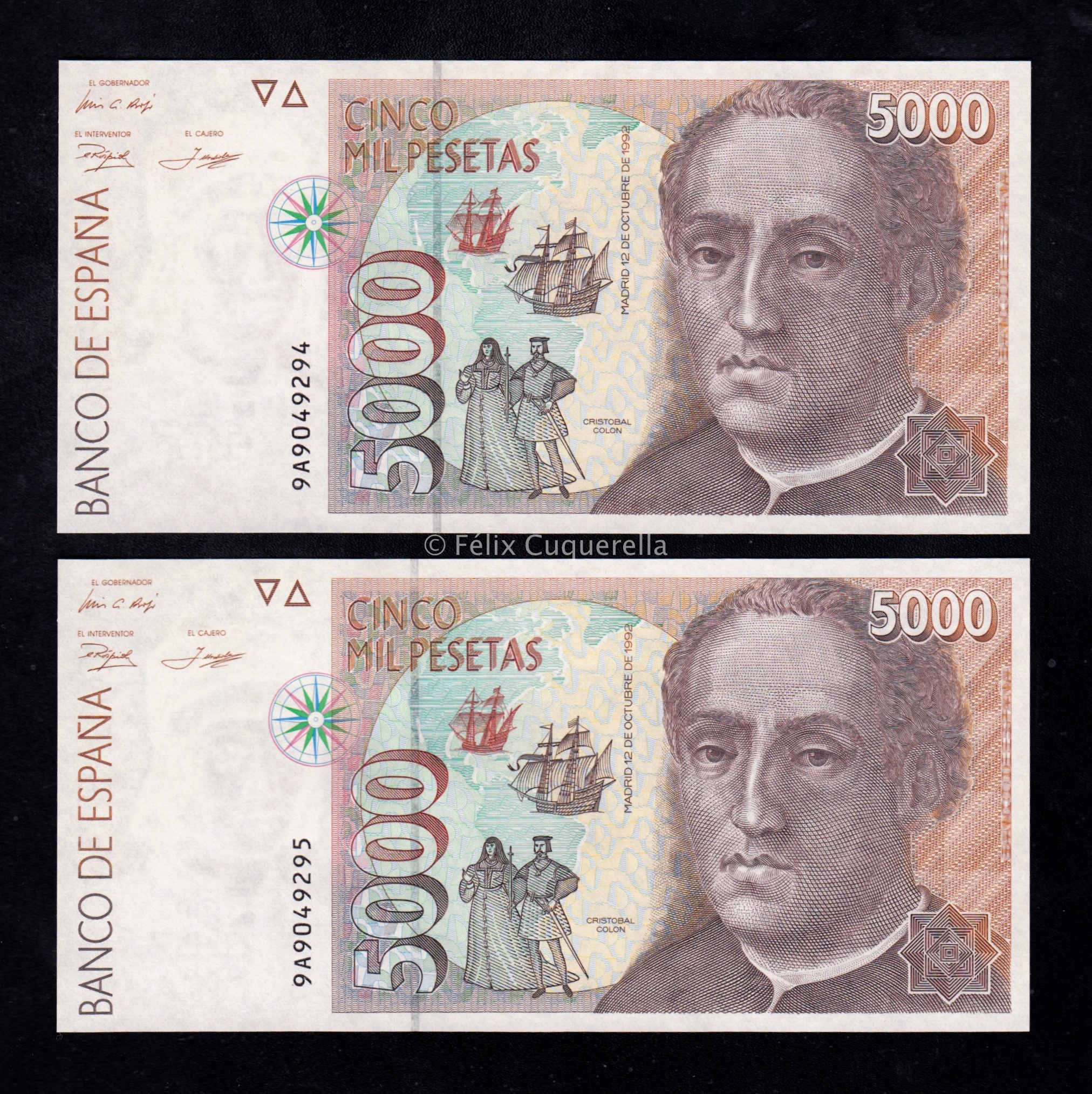 Pareja correlativa 5000 Pesetas 1992, serie 9A, EBC+