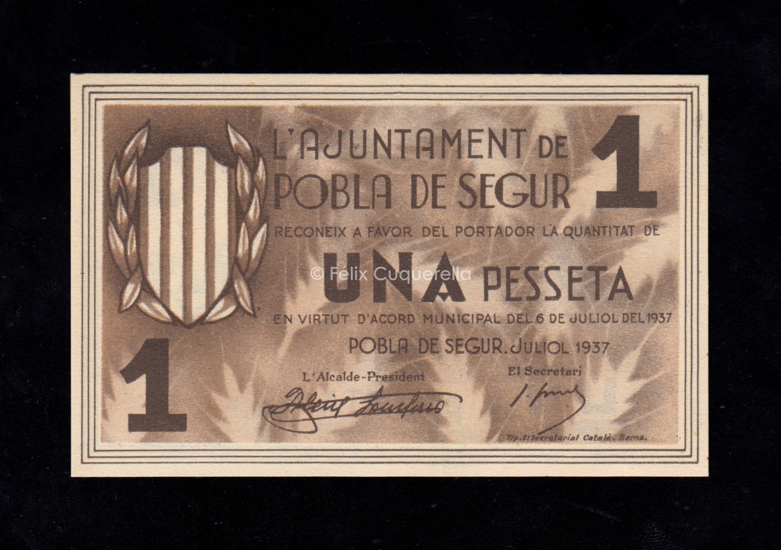 Pobla de Segur (Barcelona), 1 peseta 1937, S/C