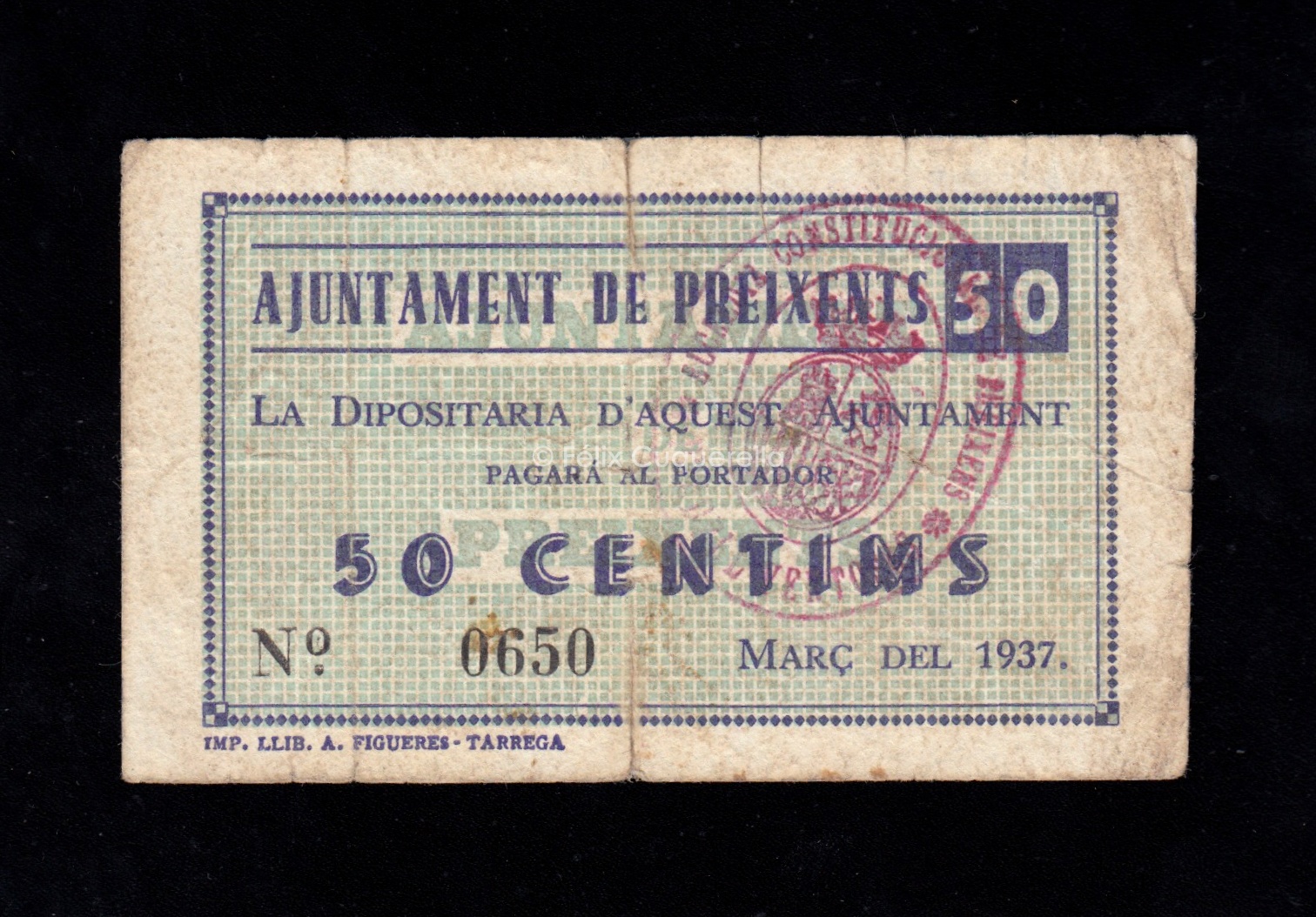 Preixents (Lérida), 50 céntimos 1937, B/C-