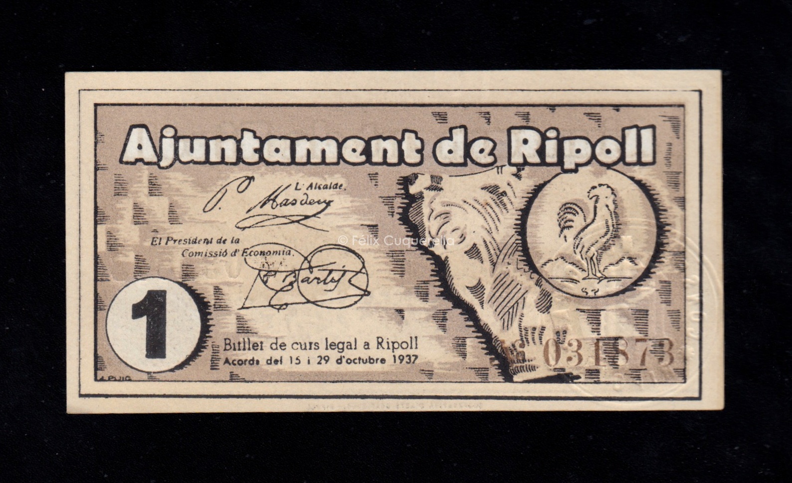 Ripoll (Gerona), 1 peseta 1937, S/C-