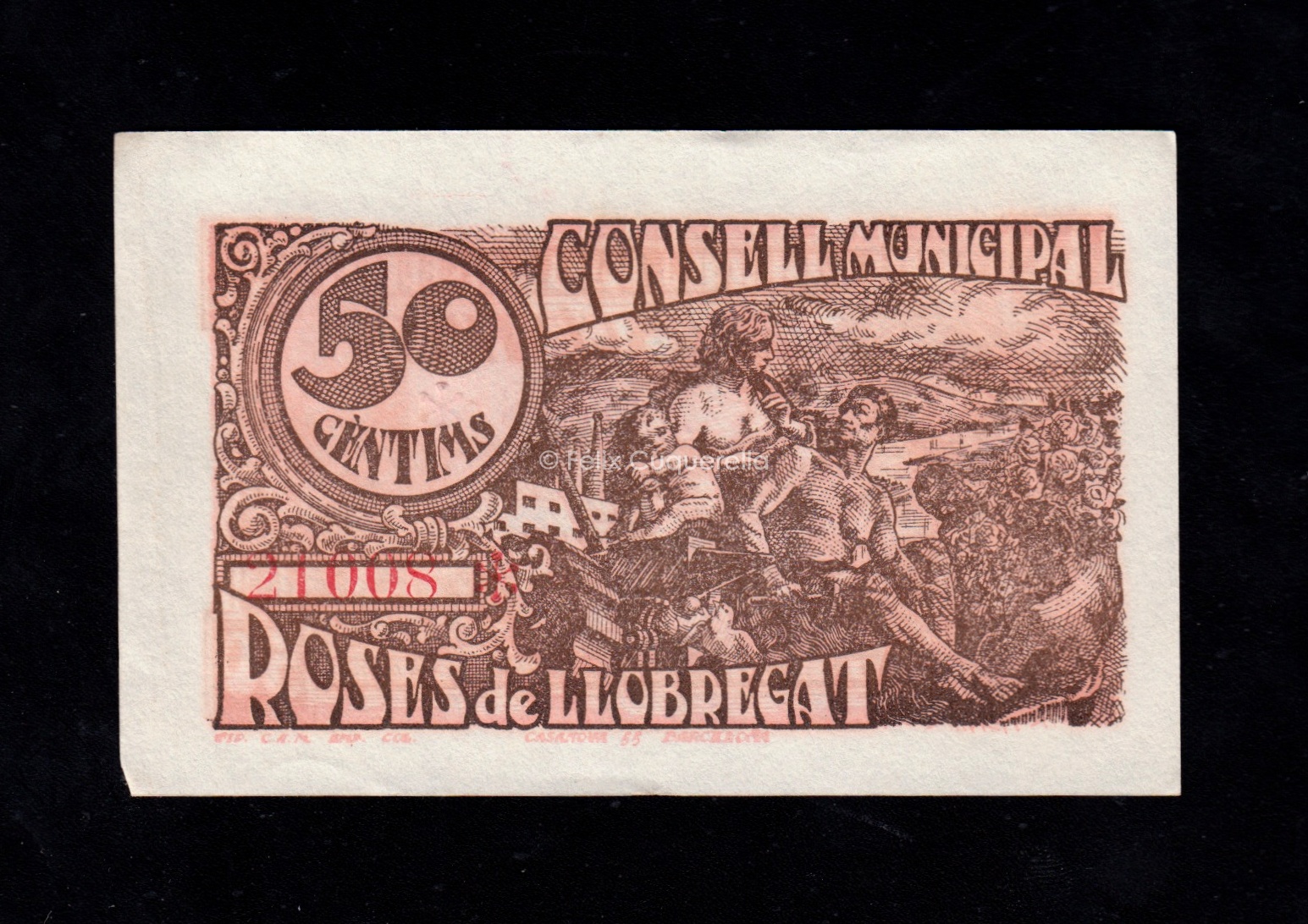 Roses de Llobregat (Barcelona), 50 céntimos 1937, EBC+