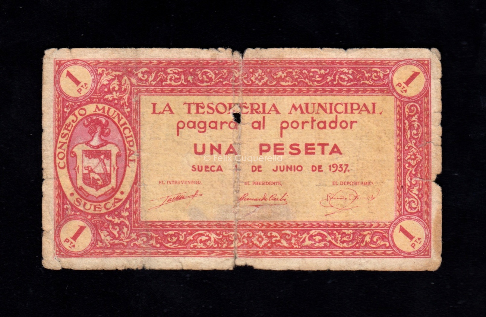 Sueca (Valencia), 1 peseta 1937, B/C-
